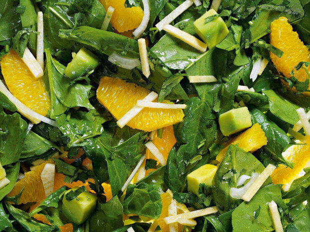 Шпинатный салат с апельсином и репкой