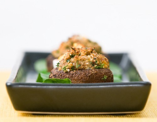 Грибы, фаршированные сыром бри, с зеленью и чесноком