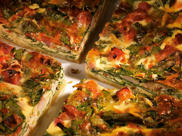 Вариация открытого французского пирога: начинка состоит из обжаренной говяжьей грудинки, тушеной моркови и шпината. Рецепт Дениса Крупени, ныне шефа сочинского отеля Rodina.
