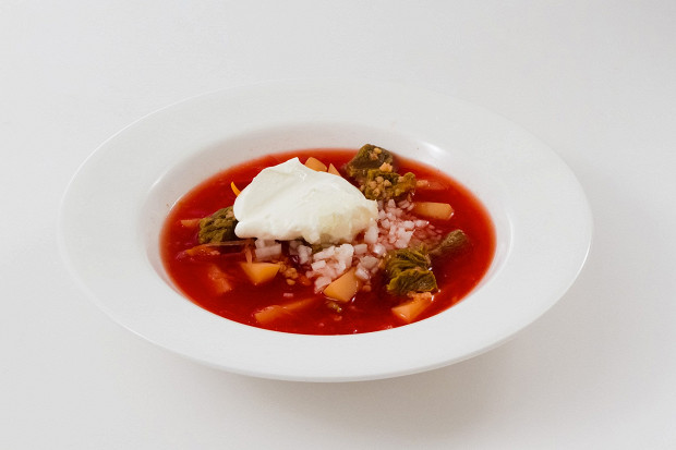 Борщ с пшеном, кефиром и сырым репчатым луком. Рецепт из книги «Пермская кухня», изданной в Перми в 1980 году.