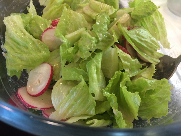 Салат из романо, редиса и огурца с тахинной заправкой