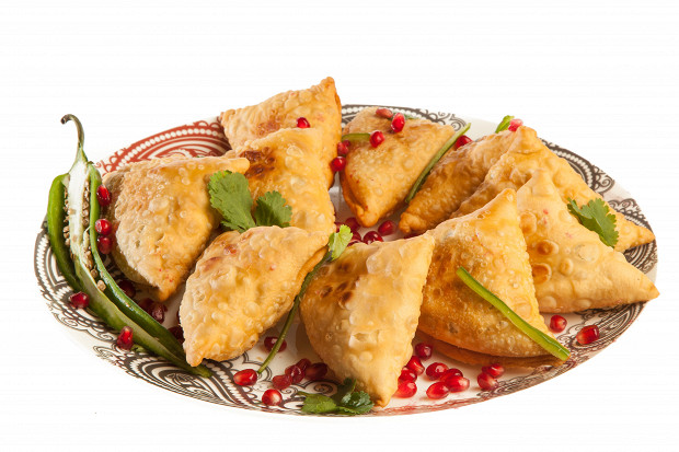 Самосы — это индийские жареные пирожки с овощами, родственники самсы. Уйма ингредиентов, включая масло двух видов и перцы — тоже два. Остроту блюда, естественно, можно варьировать.
