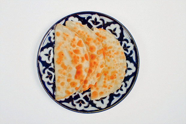 Национальные лепешки балкарцев и карачаевцев. Плоские круглые блины, внутри которых уложена пропущенная через мясорубку картошка с сыром.