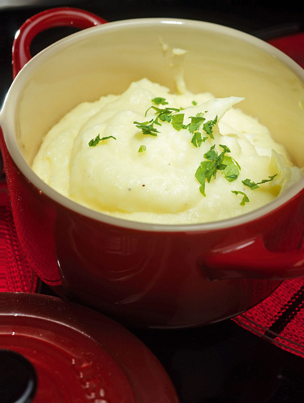 Важнейший гарнир французской кухни. В классическом рецепте только картофель и молоко, здесь же — и сливки, и сыр. Да, недиетично, зато обязательно захочется добавки.