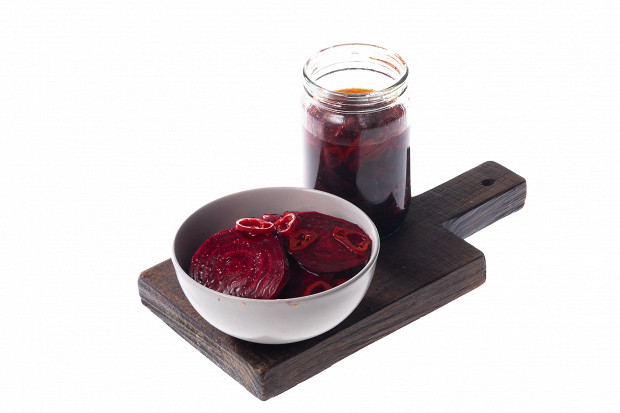 Рецепт маринованной свеклы с кунжутом мы нашли в книге израильского повара Йотама Оттоленги «Plenty». Он вообще считает свеклу суперфудом и придумал с ней целую кучу эффектных блюд для своих лондонских ресторанов. А вот добавление в консервы пасты том-ям — чистое хулиганство с нашей стороны. Мы попробовали — нам очень понравилось, вкус у консервированного салата получается взрывной, очень яркий, и, главное, острая паста начисто отбивает «могильный» привкус сырой свеклы, из-за которого многие ее не любят. Но стоит учесть, что в таком виде свекла получается огненно-жгучей, поэтому подавать свекольный салат стоит, как и сам суп том-ям, с плошкой пресного риса, например, в виде поке.