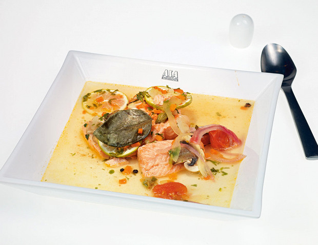 Бульона в этой лососевой ухе будет немного, но зато он будет концентрированным, как соус.