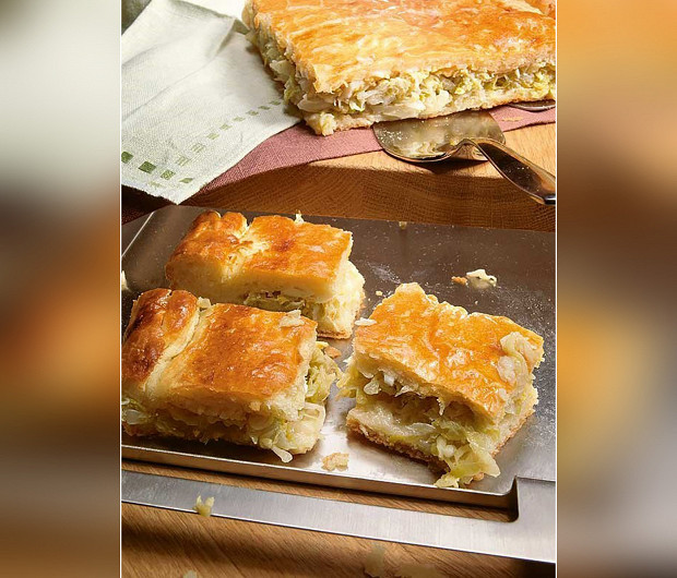 Один из самых рейтинговых рецептов сайта, секрет его популярности — в воздушном тесте, где много сливочного масла. В видеоинструкции к рецепту оно замешивается руками, но не будет беды, если для ускорения процесса вы используете миксер — но лучше в пульсовом режиме, чтобы масло не перегрелось и не потекло. В начинке есть секрет: капуста сначала ошпаривается кипятком, а потом томится в молоке, результат — крайне деликатная, почти сливочная текстура.
