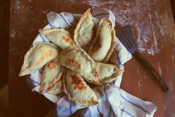 Увесистые пироги в форме полумесяца недаром называются студенческими — для них требуется только мука, вода, яйца и, собственно, капуста. Крутое тесто раскатывается до толщины бумаги, в начинку для воздушности замешивается приготовленный отдельно на сковородке белковый омлет. Можно, как сказано в рецепте, подрумянить пироги в духовке, а можно обжарить во фритюре — тогда пироги обретут сходство с чебуреком в хрустящей пузырчатой корочке.