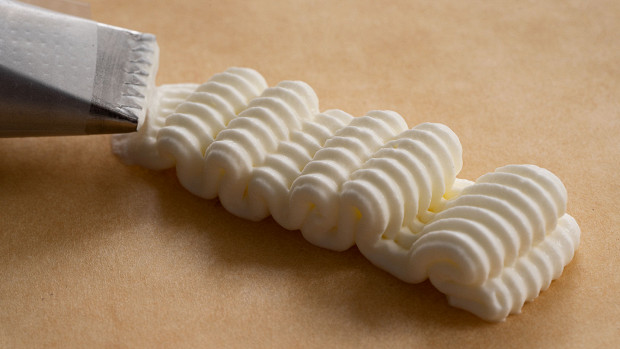 Крем очень послушный, прекрасно держит форму, хорошо взаимодействует с красителями и ароматизаторами на любом этапе приготовления, поэтому делать из него «шапочки» для капкейков, разноцветные розочки, рюши, бортики и наводить прочую красоту одно удовольствие.