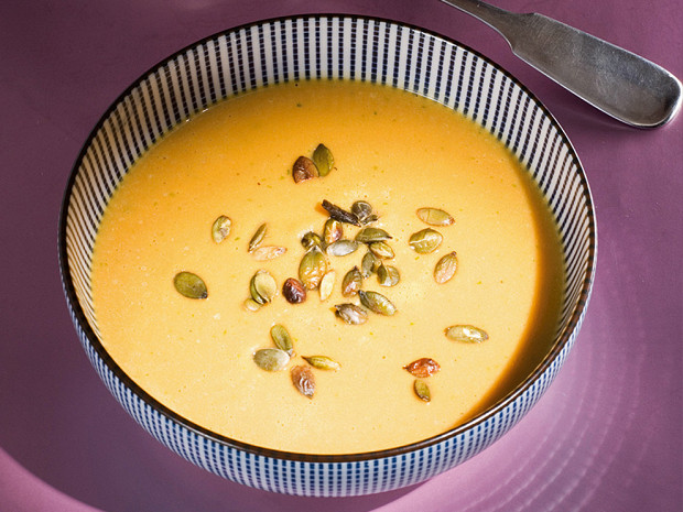 Портрет этой оранжевой похлебки украшает обложку книги «La Cuisine du Marché» Поля Бокюза. Бокюз, придумавший так называемую новую кухню, считал тыкву одной из основ этого миропорядка, а тыквенный суп — эдакой околоплодной водой гастрономии. В качестве емкости для подачи этого супа можно вслед за Бокюзом использовать выскобленную тыкву. Свежую или слегка запеченную в духовке. У тыквы предварительно срезается верх, там где хвостик, извлекаются все мусорные внутренности.