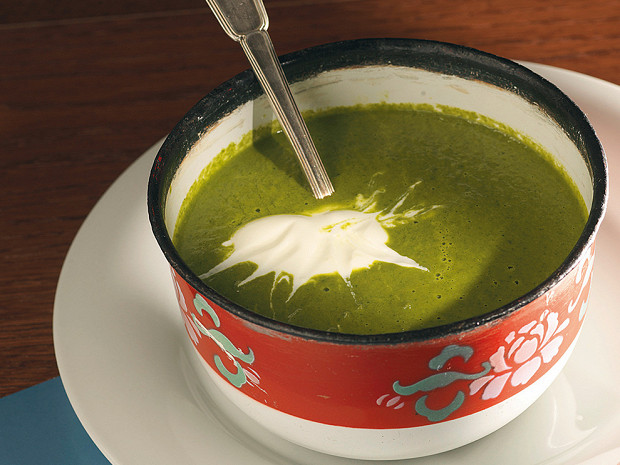 Несмотря на значительное присутствие шпината главным в этом супе является все-таки кресс-салат. Он дает тонкую перечную горчинку, а шпинат служит для увеличения вегетативной массы и для придания похлебке бодрого зеленого цвета — потому что, в отличие от кресс-салата, при нагревании не превращается в бурую водоросль.