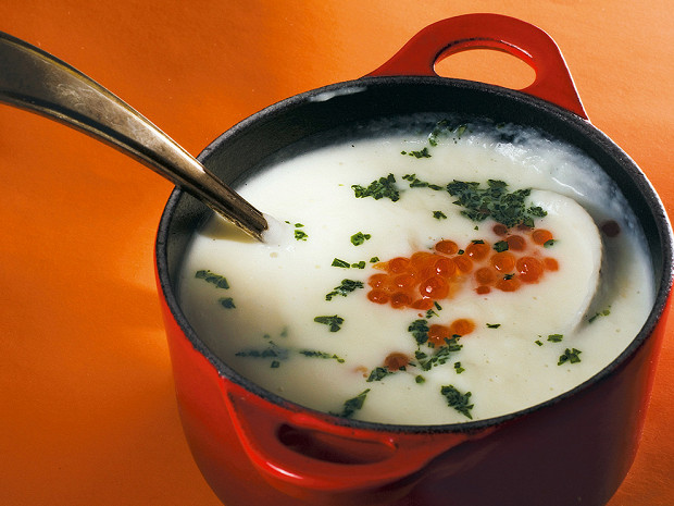 Вот блюдо, в котором идея диетичности и аскезы гармонично сосуществует с фактом не просто сытости, а даже какого-то излишества. С одной стороны — пюреобразная масса, уютно обволакивающая желудок и не нуждающаяся в таможне из зубов. С другой — крепкие бульоны, сливки и сливочное масло. С одной стороны, готовятся они стремительно, за десять минут — полчаса. С другой, для приготовления нужно иметь в запасе кастрюлю говяжьей или куриной эссенции, на создание которой нужно потратить часа четыре. Конечно, всегда есть вариант воспользоваться бульонным кубиком. Но не будем до поры превращать возможность в реальность.