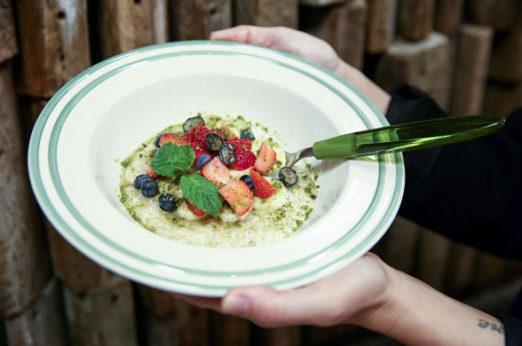 В новой пятерке — салат с помидорами и пекинской капустой, холодный томатный суп с абхазскими помидорами, каша из бурого риса, шашлык из говядины в устричном соусе, кокосовое печенье со сгущенным молоком.