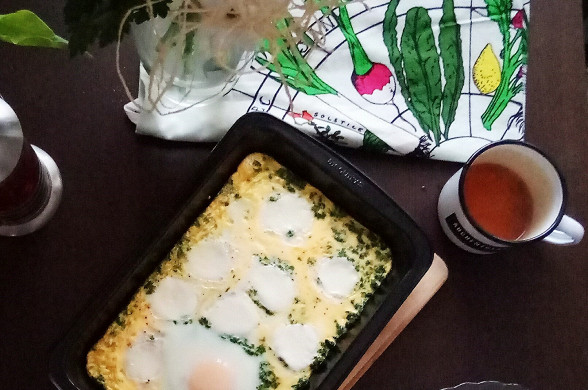 Завтрак по рецепту Себастьяна Заватского — яичная запеканка со шпинатом, сливками и моцареллой. Сырно-овощная нежность.