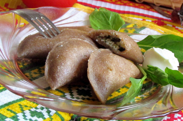 Цельнозерновые вареники с творогом и зеленью