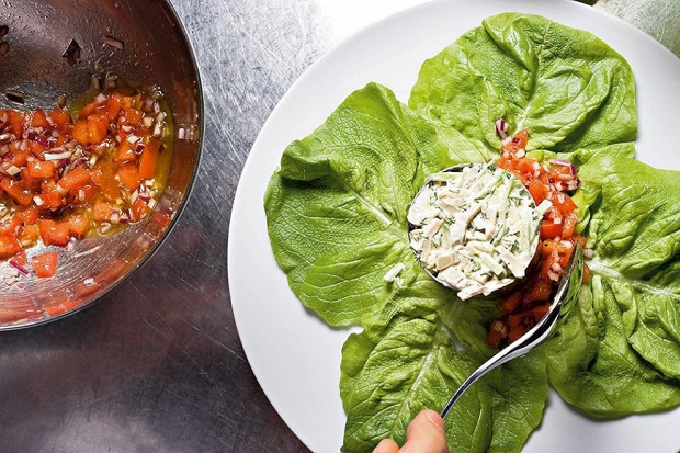 Одна из многочисленных вариаций на тему, заданную когда-то шефом московского ресторана «Эрмитаж» Люсьеном Оливье, — со слабосоленой красной рыбой. Кстати, прародитель всех оливье был назван Люсьеном «Майонез из дичи», что говорит о первостепенной роли соуса.