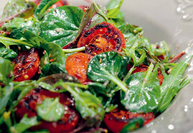 Салат с обжаренными помидорами может стать отличным дополнением к бифштексу.