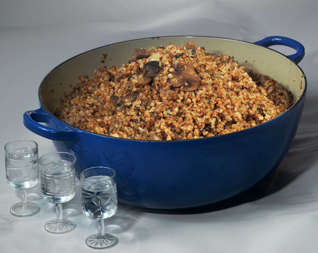 Гречку с пармезаном любят готовить в ресторанах, но этот рецепт был найден нашей редакцией в Карабихе, имении поэта Некрасова. Оказывается, певец народных страданий был тонким гурманом и завсегдатаем существовавшего в 1870-х годах в Петербурге гастрономического клуба, члены которого выставляли оценки каждому блюду и вину на званых обедах. Тут, без сомнения, высший балл: сладость и резкость пармезана вместе с крепким грибным духом волшебно вплетаются в пресность каши. Можно еще капнуть трюфельного масла — и наслаждение станет почти неприличным.
