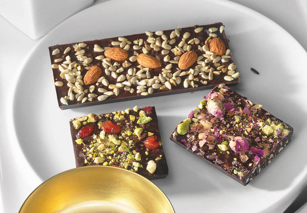 Шоколадные плитки с кешью, барбарисом и розовым перцем