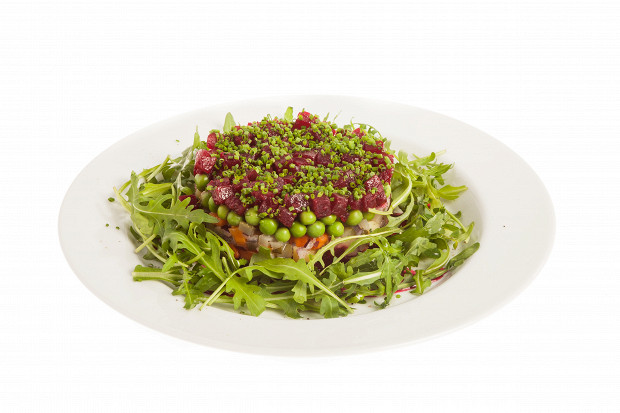 Салат с айвой, свеклой, маринованными огурцами и каперсами