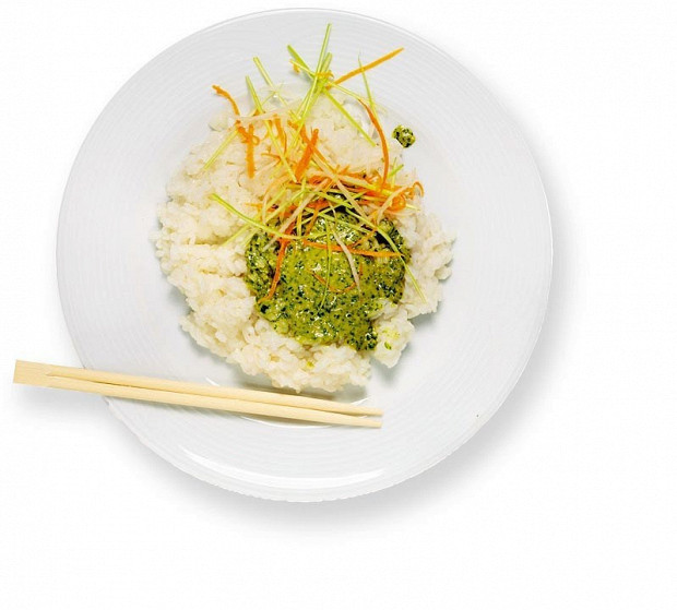 Сладкий рис с песто из кинзы