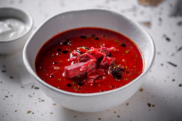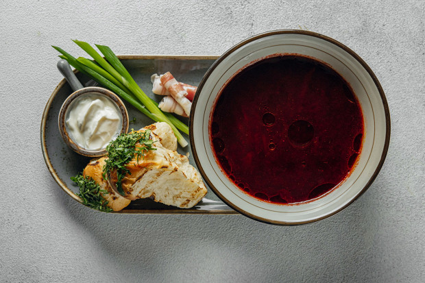 Яркий, насыщенный борщ, состоящий из двух бульонов — говяжьего и куриного. Рецепт Ильи Захарова, бренд-шефа ресторана «Дельфин и русалка».