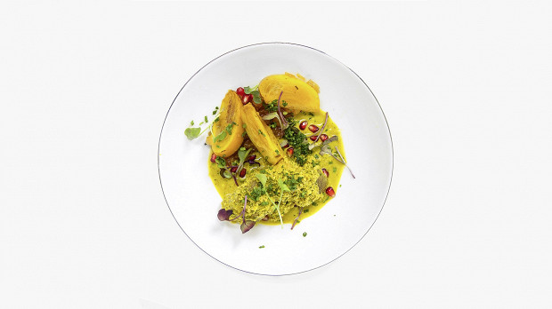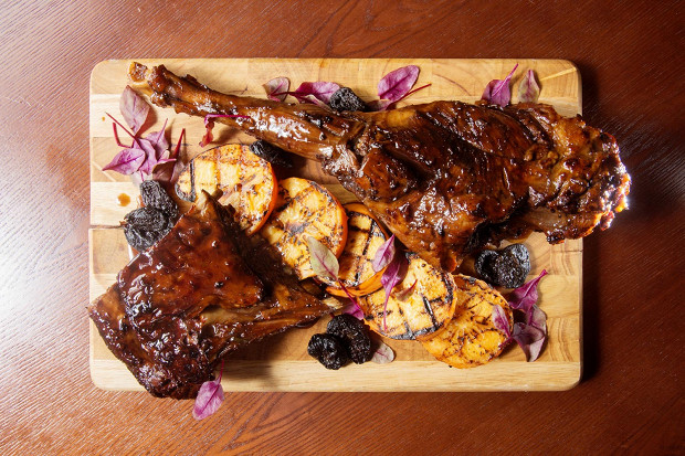 Баранина, томленная с портвейном, сочетается с хурмой, жаренной на гриле: в духе Магриба мясо сочетается со сладким.