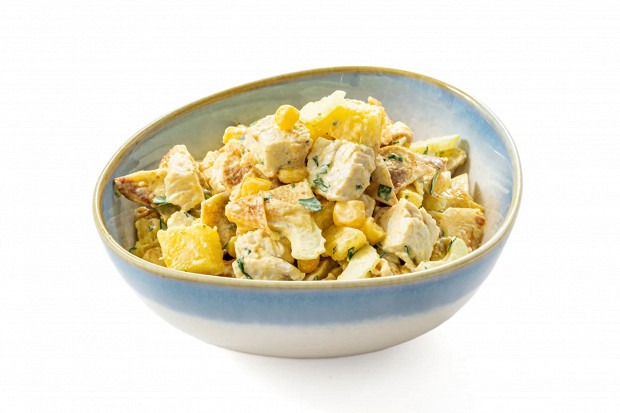 Вечный вопрос, который становится особенно актуален на третий-четвертый день Масленицы: «Куда девать блины, если они успели подсохнуть, порвались, заняли собой всю кухню или просто в рот не лезут?» Мы нашли парадоксальное, но тем и прекрасное решение, придумав с блинами салат, в котором использовали давно проверенное сочетание индейки и ананаса. Несколько смелых штрихов добавляют классическому салату оригинальности. В качестве заправки майонез с петрушкой и карри интереснее майонеза в чистом виде, сельдерей оживляет салат. И у блинов тут важная роль: с ними закуска превращается в основательное блюдо, способное стать ужином или обедом.