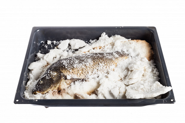 Рецепт с минимумом ингредиентов для самых ленивых. Вернее, это скорее технология, потому что рыбу можно брать любую — главное цельную. Это, может, не слишком нарядно — или даже минималистично, — зато необычно, очень быстро и просто. Минимум усилий — и основное блюдо праздника готово.