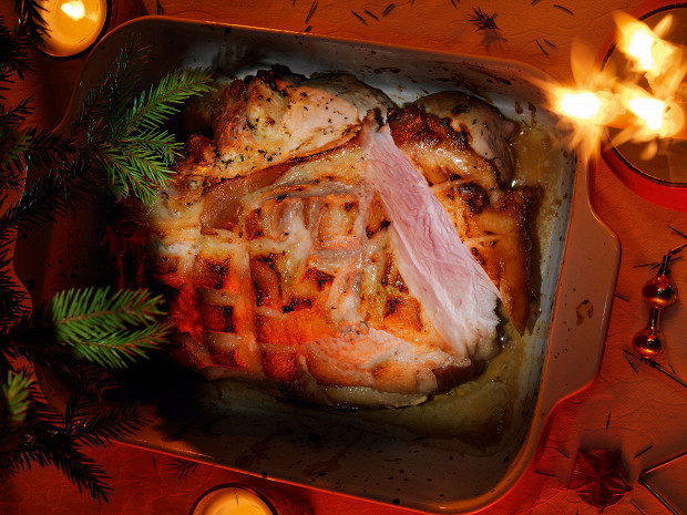 Масштабное блюдо, требующее длительной, но несложной подготовительной работы. Сначала окорок вымачивают в подсоленной воде (таким образом мясо идеально просаливается), затем запекают с овощами и покрывают глазурью из желтков, меда и крепкого кофе (эспрессо). Замечательный рецепт еще и потому, что ветчину эту можно есть как горячей, так и холодной — уже после праздника, например, с ржаным хлебом. Но обязательно с горчицей или горчичным соусом.