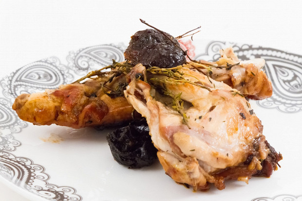 Еще одно минималистичное блюдо, демонстрирующее скорее технологию, нежели празднично выглядящий конечный результат. Как сделать эту курицу нарядной — решите сами. Можно подать ее с запеченными овощами, рисом, гречкой, например.