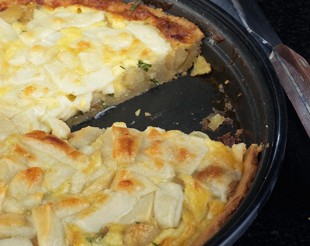 Киш с чесноком и сыром хорош, только пока не остыл, поэтому съедать его нужно немедленно. В начинке огромное количество чеснока, но его вкус сильно смягчается в процессе варки.