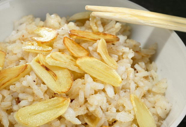 Рис с мускатным орехом, корицей и чесночными чипсами