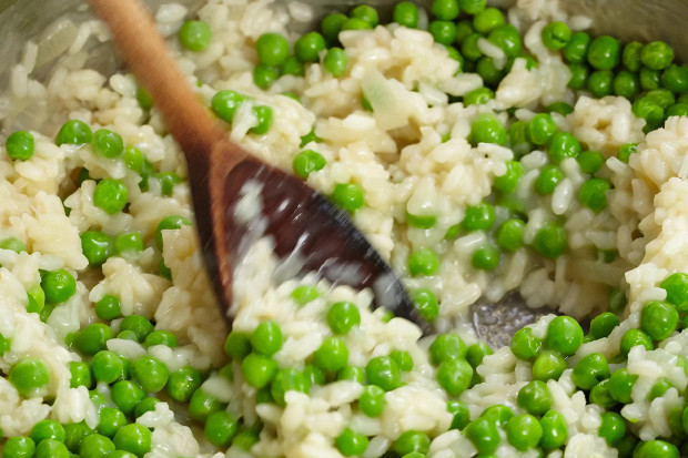 Рецепт взят из книги Никки Даффи, в которой собраны рецепты для детей. Но детское блюдо — не значит неинтересное. Тут все, как во взрослом ризотто, — специальный рис арборио, который не разваливается на сковороде, тертый пармезан и, самое главное, зеленый горошек, который делает ужин более легким для желудка и приятным для глаз. Наш совет — используйте горошек не из банки, а замороженный, на сковородке он оттает за минуту, и от него так и повеет весной. В отличие от классического ризотто, здесь не используется вино, но без него вполне можно обойтись, в крайнем случае налейте за ужином взрослым по бокальчику.