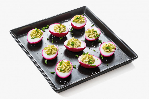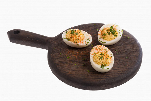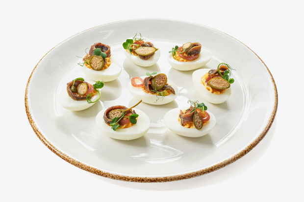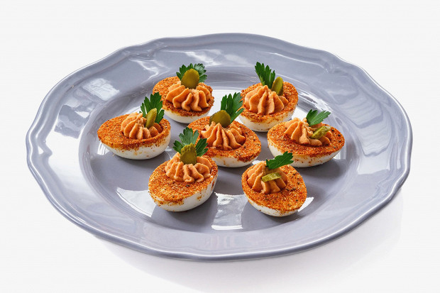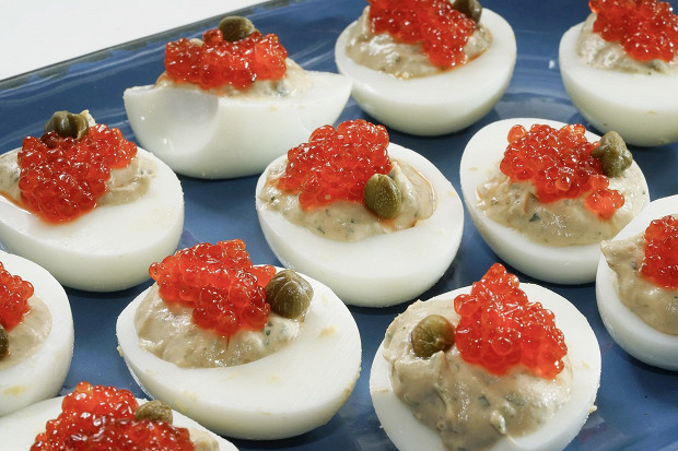 Изящная французская закуска, где к начинке из желтка и майонеза добавляется капля ядреного и одновременно нежного трюфельного масла. Одна из самых праздничных закусок в этой подборке.