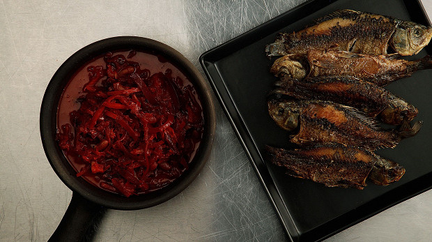 Рецепт шефа ресторана White Rabbit Владимира Мухина. Так готовила борщ его бабушка в Ессентуках — с карасями, яблочным уксусом и фасолью.