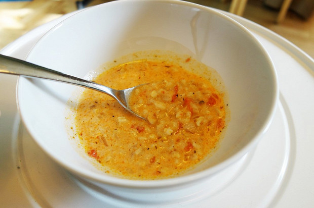Ароматное варево, в котором перловка объединяется с помидорами, чесноком, тимьяном и репчатым луком. Надежно закрепляет эту дружбу наваристый куриный бульон.