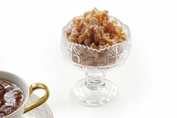 Отчасти итальянский десерт, в котором ярко ощущаются цитрусовые. Тыкву мы нарезали на маленькие кубики, после чего трижды отварили их с цедрой, апельсиновым соком и палочкой корицы; собственного тыквенного сока там тоже было предостаточно. Эта история с трехчастной варкой очень важна — тыква так не превратится в кашу, и кубики хорошенько засахарятся, станут прозрачными и сохранят четкую геометрическую форму.