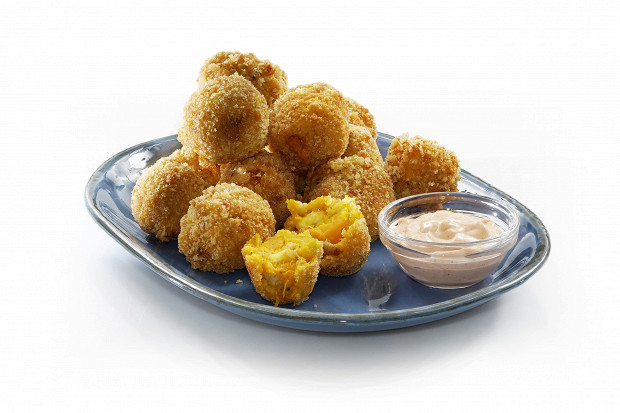 Из простых, доступных всем продуктов получились красивые японские крокеты. И сразу же стали хитом месяца в редакции. Сначала мы запекли тыкву в микроволновке до мягкости (можно воспользоваться и духовкой), затем размяли ее вилкой, после соединили тыквенную мякоть с куриным фаршем, потом слепили крокеты, в которые несложным движением поместили кусочки моцареллы. Готовить крокеты нужно во фритюре, на любом рафинированном масле, что в итоге дает нам много разных текстур: хрустящую корочку, разномастные кусочки тыквы и фарша и как бонус — тянущуюся горячую моцареллу. Есть эту закуску лучше всего с каким-нибудь ярким японским соусом. Мы рекомендуем тонкацу либо смесь майонеза с соусом шрирача, запивать — пивом!