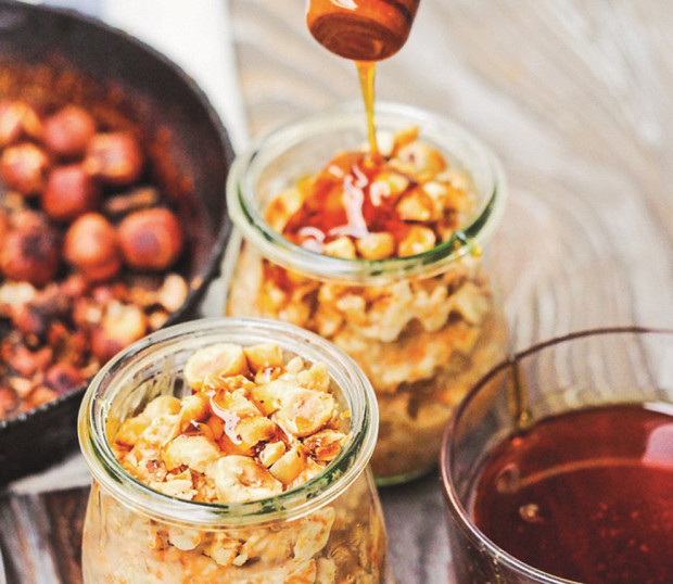 Хит ленивых родителей. Залейте хлопья с вечера молоком (можно коровьим, можно миндальным) и йогуртом, добавьте любимые специи, например корицу, и оставьте на ночь. С утра полейте медом, посыпьте орехами — готово!
