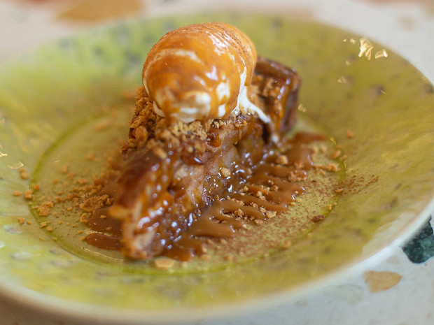 Сладость в этой шарлотке, безусловно есть, и достигается она благодаря виноградному сиропу, который используют вместо сахара. Так готовят шарлотку в Margarita Bistro.