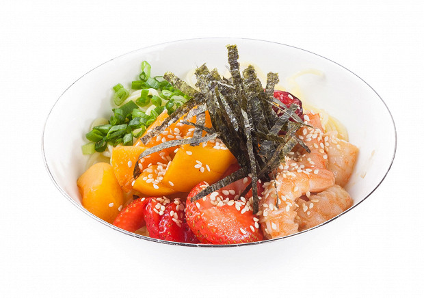 Поке с лапшой, креветками и сезонными ягодами