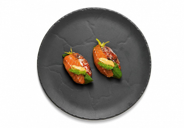 Ювелирный рецепт, где роль риса выполняют микрокотлетки из слабосоленого лосося. Тут упомянут соевый айоли, его запросто можно сделать самостоятельно, инструкция прилагается.