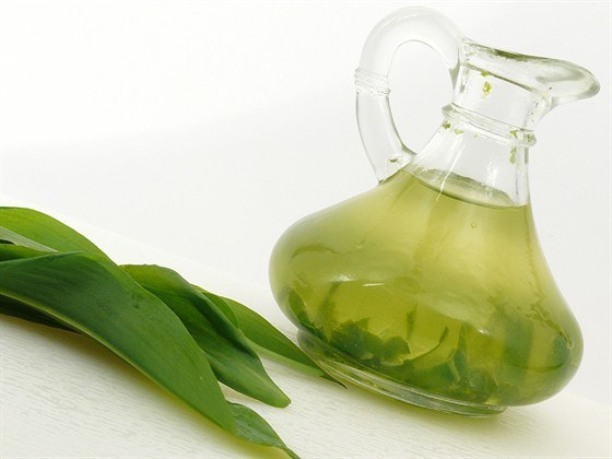 Проще не бывает: пучок свежей хрустящей черемши на бутылку хорошего оливкового масла extra virgin.