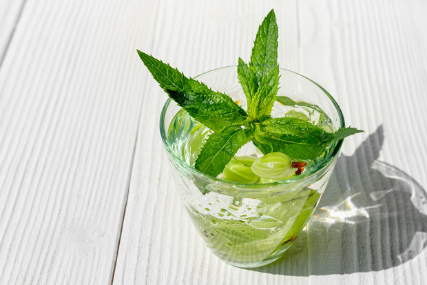 Это рецепт не коктейля, а компота, но присутствие мяты навсегда закрепило за ним никнейм «мохито». Готовят такой компот и с другими ягодами, но крыжовник и мята — идеальная во всех отношениях пара. Лучше использовать крыжовник зеленых сортов, слегка недозрелый — так компот получится свежее, да и зеленая монохромность симпатичнее смотрится в банке. Зимой эту домашнюю заготовку можно использовать и как самостоятельный напиток, добавив немного свежей мяты, а также мешать с ним коктейли — получите лето в бокале.