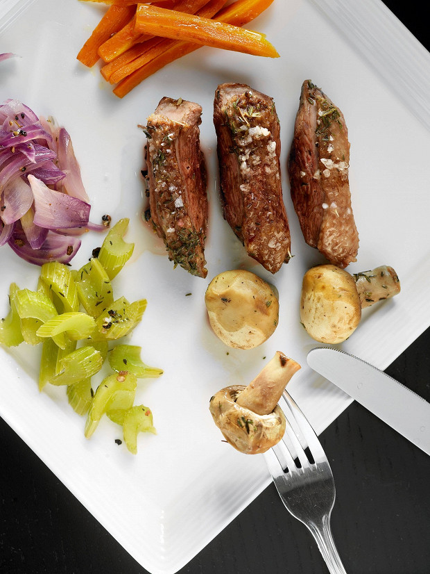 Спокойный рецепт, в котором свиная корейка доводится до состояния крайней нежности. Но поскольку она готовится вместе с овощами, следите, чтобы овощи не превратились в желе.