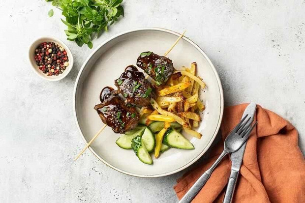 Еще один рецепт шашлыка в духовке, на этот раз — из мраморной говядины. Главный герой — пряно-острый маринад из паприки, лимонного сока, растительного масла и перца, идеально подчеркивающий брутальную текстуру мяса.