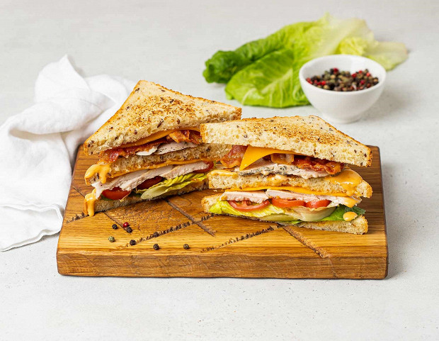Своим названием сэндвич обязан происхождению: впервые его (или что-то на него похожее) приготовили в одном из нью-йоркских закрытых клубов в конце XIX века. Вторая версия недалека от первой: индейку с латуком придумали помещать между поджаренными ломтями хлеба в то же время и в том же городе, но в другом клубе — для картежников. Впрочем, неважно, кому этот сэндвич поднесли впервые — нью-йоркскому магнату или проматывающему его состояние за карточным столом родственнику; дело было в клубе, и сэндвич получил соответствующее название. Сейчас ингредиентов в нем так много, что сэндвич скрепляют коктейльной шпажкой, чтобы он не развалился. Бекон, индейка или курица, сыр, томаты, латук, майонез. Щедро, в несколько слоев. Но по-прежнему сдерживает все это буйство поджаренный белый хлеб.