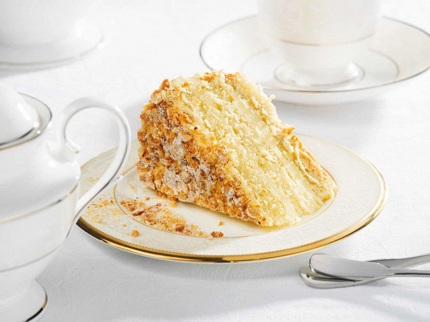 Торт действительно «Подарочный», все в названии. Бисквитные коржи, орехи, нежный крем и вкрапления орехов. С ним придется повозиться, зато и в гости не стыдно принести: выглядит этот торт словно из хорошей кондитерской, да и на вкус ничуть не хуже.