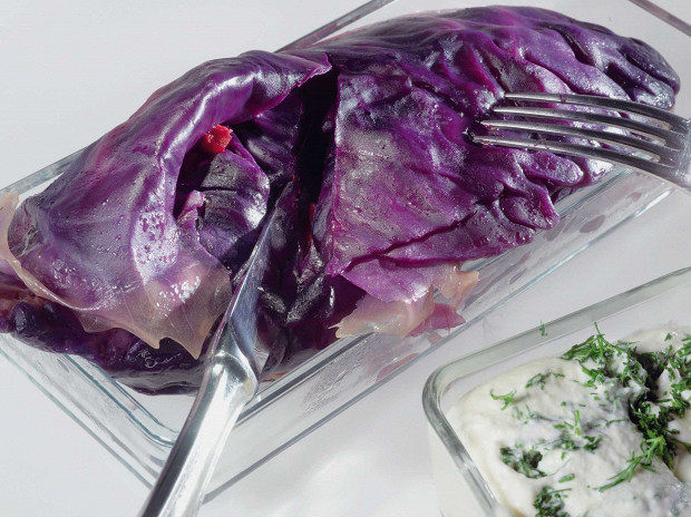 Мощные листья зрелой красной капусты можно проваривать, не опасаясь, что они размякнут.